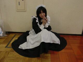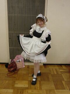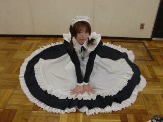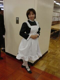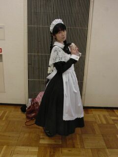 (フォトコレクションにこのメイドさんの写真が他にも数点大きなサイズで収録してますので、この写真でレースの感じがわかりにくいと思われたらそちらをどうぞ)非常にシンプルなメイドスタイルです。いや、やはり長いスカートというのは素晴らしい。もっとも肩のフリルがあれだけ大きいならば、エプロンも裾にフリルつけた方がバランスがいいかも。