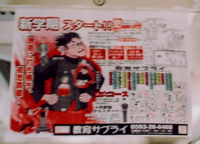 ところが、そのような様々な目を楽しませてくれるものの存在を全て打ち消すような恐るべきものが、この車中にあったのです。それは学習塾の広告なんですが・・・「教育サ○ライ」という地元の塾なんですが、これの手作り(プリンタで印刷して手作業で貼りつけて中吊りサイズにしている)広告のなんと電波なことよ。サイトもありますのでこっそりご紹介(ttp://www.ed-supply.co.jp/)しておきますが、中吊りのセンスはもっと遥かに凄いよ。
